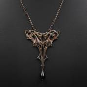 2e gehalte zilveren collier, de centrale hanger gedecoreerd met narcissen, waaronder een onyx druppelvormige kraal, art nouveau-stijl, brutogewicht 22,6 gram, hanger 9 × 6,3 cm