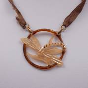 Hoornen libellehanger aan bruin zijden koord -koord sleets-, Ø 48 mm, brutogewicht 4,4 gram