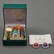 Onedel damespolshorloge, quartz uurwerk, Gucci, met 14 verwisselbare bezelringen, in origineel foedraal, verstelbare maat