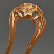 Hoornen haarkam, gedecoreerd met deels gouden narcissen, ongesigneerd, in foedraal, brutogewicht 12,8 gram, 13 × 5,7 cm