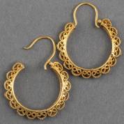 Paar 18kt gouden filigrain oorhangers, gewicht 5,2 gram, Ø 2,5 cm