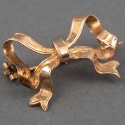 14kt roségouden strikbroche, gewicht 0,60 gram, 2,5 × 1,6 cm