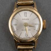 14kt gouden damespolshorloge Arlux met mechanisch uurwerk, aan 14kt gouden Milanese band, brutogewicht 15,8 gram, kast Ø 1,6 cm, lengte circa 15,5 cm