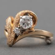 14kt bicolor gouden bloemring gezet met twee briljantgeslepen diamanten, brutogewicht 6,4 gram, mt. 15,5