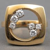 18kt gouden ring gezet met zes briljantgeslepen diamanten, brutogewicht 10,1 gram, mt. 17,5