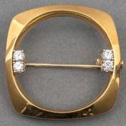 18kt gouden broche gezet met vier briljantgeslepen diamanten, brutogewicht 10,6 gram
