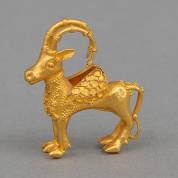20kt gouden beeldje in de vorm van een gevleugelde steenbok met filigrain applicaties, Scythische stijl -één oortje verbogen-, gewicht 8,4 gram, 3,3 × 3 cm, herkomst: privécollectie van kunsthandelaar Abraham van der Meer (1927-2008), destijds gevestigd op de Spiegelgracht 3 te Amsterdam