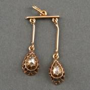 14kt gouden negligéhanger gezet met twee roosdiamanten, brutogewicht 3,0 gram, 4 cm