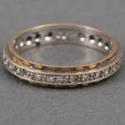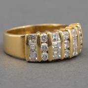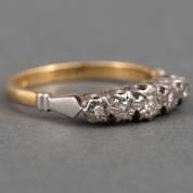 18kt gouden rijring gezet met vijf briljantgeslepen diamantjes, mt. 15,75, brutogewicht 2,4 gram