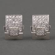 Paar 18kt witgouden strak vormgegeven oorstekers, elk pavégezet met 31 briljantgeslepen diamantjes, totaal 1.18ct, kleur G en kwaliteit VS en SI, brutogewicht 6,6 gram