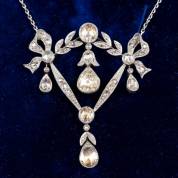 BWG Platina lavaliercollier met ankerschakel, het centrale deel bestaande uit guirlandes gezet met diverse roosgeslepen diamanten, met gouden achterzijde, in foedraal van Bonebakker & Zoon, Amsterdam, brutogewicht 14,4 gram, 39 cm