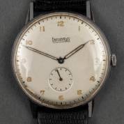 Stalen herenpolshorloge Eberhard, automaat, zilverkleurige wijzerplaat met chronosecondeaanduiding, aan zwart lederen band, Ø 3,4 cm