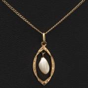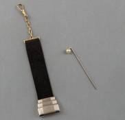 14kt gouden en zilveren chatelaine en BWZG dasspeld met gecultiveerde parel, brutogewicht 7,4 gram, chatelaine 13,5 cm, in lederen doosje van Bonebakker, Amsterdam