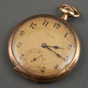 Herenvestzakhorloge in 14kt gouden kast, de vergulde wijzerplaat met Arabische cijfers, adres: Silvana, brutogewicht 58 gram