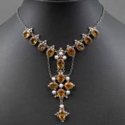 1e gehalte zilveren collier gezet met veertien gefacetteerde citrienen en negen parels, jugendstil, brutogewicht 33 gram, halslengte 36 cm, hangend deel 10cm, met verzekeringsbewijs uit Lauterbach, 2002, voor eur 5.000