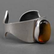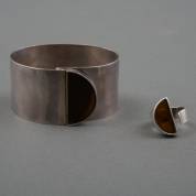 2e gehalte zilveren set, bestaande uit: armband en ring gezet met bruine kunststof inleg, meester: Bruno Ninaber van Eyben, Boxtel, jaren zeventig, brutogewicht 50 gram, 4,6 × 6 cm en verstelbare ringmaat