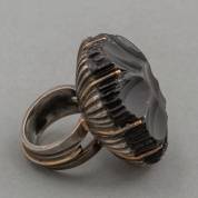 14kt gouden en 2e gehalte zilveren ring gezet met ovaal organisch geslepen onyx, brutogewicht 58,6 gram, mt. 18