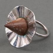 Zilveren modernistische ring, het centrale deel gezet met een houten kegeltje, brutogewicht 9 gram, mt. 16,75