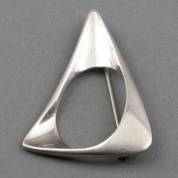 1e gehalte zilveren triangelvormige broche, model 375, uitvoering Henning Koppel voor Georg Jensen, gewicht 21 gram, 5,8 × 4,4 cm