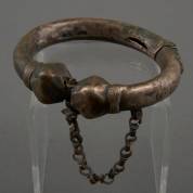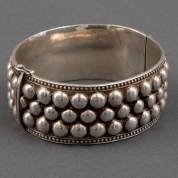 Etnisch zilveren armband met scharnier en pinsluiting, gewicht 89 gram, binnenmaat 7 cm
