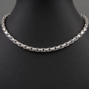 Gepolineerd en gerodineerd 1e gehalte zilveren stilistisch schakelcollier, gewicht 48,4 gram, lengte circa 42 cm