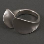 Stilistisch vormgegeven 1e gehalte zilveren gesatineerde ring, mt. 18, gewicht 16 gram