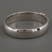 Gerodineerd 1e gehalte zilveren brede stijve armband met scharnier, bakslot en veiligheidsachtje, gewicht 39,8 gram, binnenmaat 6,5 cm
