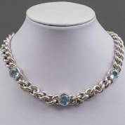1e gehalte zilveren gourmetschakelcollier, Pianegonda, gezet met drie rond gefacetteerde topazen, brutogewicht 114,4 gram, lengte circa 42 cm