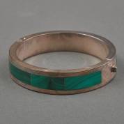 Zilveren stijve armband met malachiet inleg, brutogewicht 74 gram, binnenste diameter Ø 5,8 cm