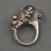 1e gehalte zilveren ring gezet met een bolvormige bergkristal, Frankrijk, brutogewicht 15 gram, mt. 14,75