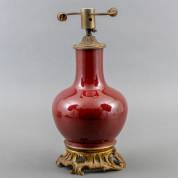 Chinees porseleinen flambé vaas, vermaakt tot lamp, 19e eeuw -rand afgeslepen, bodem verwijderd-, 48 × Ø 23 cm