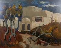 Piet Schoenmakers (1919-2009), mediterraan landschap met witgeschilderd huis, olieverf op board, r.o. gesigneerd, 77,5 × 98,5 cm