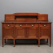 Mahonie buffet (opus 880) met drie lades, paneeldeurtjes en lichtgekleurde toogpennen, het blad met coromandel panelen, ontwerp Jac. van den Bosch, uitvoering 't Binnenhuis, gemonogrammeerd met brandmerk en gemerkt met plaatje aan binnenzijde van deurtje, circa 1909 -één poot los, één coromandel paneeltje gescheurd-, 124 × 180 × 48 cm, afgebeeld in 'Jac. van den Bosch 1868-1948)', uitg. Drents Museum Assen en Museum Kempenland Eindhoven, 1987, pag. 64, plaat 50, boek bijgevoegd