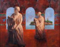 Peter Boekholt (1949), 'Idylle', olieverf op paneel, r.o. gemonogrammeerd en gedateerd 1997, op verso nogmaals gesigneerd en gedateerd, herkomst: Galerie Honingen, Rotterdam, kopie aankoopbewijs aanwezig, 40 × 50 cm