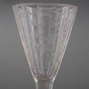 Gelegenheidsglas met geslepen decor van vogel boven bloemenvaas, eind 18e eeuw -enkele chips-, hoogte 16,5 cm
