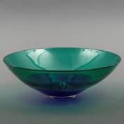 Floris Meydam (1919-2011), groen-blauwe glazen schaal, de kern met opgetrokken punt, gesigneerd en gedateerd 1992, Bath, Engeland, 10 × Ø 29 cm
