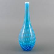 Blauw glazen steelvaas met wit stippendecor, tweede helft 20e eeuw, 40 cm hoog