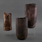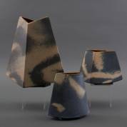 Noor Camstra (1953), drie bruin-zwart geglazuurde vazen, gemerkt, jaren '80 -gebruikssporen, één vaas met barstje of bakfoutje-, 32 × 26 × 22 cm