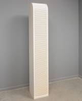 Hoge witte kast met kunststof roffeldeur, model Amsterdammer, ontwerp Aldo van den Nieuwelaar, uitvoering Pastoe, jaren '70 -gebruikssporen, krassen, kunststof vergeeld, achterwand met barst en hoekjes onderkant roffeldeurtje beschadigd-, 221,5 × 37× 37 cm