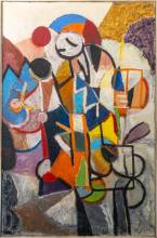 André van der Vossen (1893-1963), moderne compositie, gemengde techniek op papier, r.o. gesigneerd, 22,5 × 28,5 cm