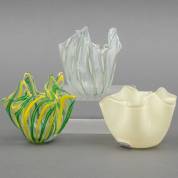Drie diverse glazen 'zakdoek' vaasjes, ontwerp Fulvio Bianconi en Paolo Venini, uitvoering Venini, Murano, midden 20e eeuw, twee gemerkt, 8,5 cm hoog