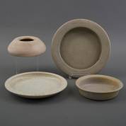 Drie keramische schalen en een vaasje, waaronder uitvoering Gert de Rijk en Peter Selhorst, Nederland, jaren '80 -lichte gebruikssporen-, 4 × 30 cm