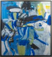 Hollandse School: abstracte compositie, olieverf op doek, l.o. onduidelijk gesigneerd, 100 × 110 cm