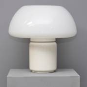 Witte paddenstoelvormige tafellamp met kunststof kap, model 625, ontwerp Elio Martinelli, uitvoering Martinelli Luce, Italië, jaren '70, 52 × Ø 55 cm