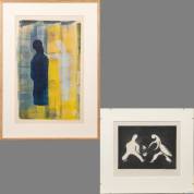 Twee drukken: Johan Christiaan van Schagen (1891-1985), twee figuren, ets, gesigneerd en verso onduidelijk getiteld, en litho naar Hendrik Nicolaas Werkman, onderdeel van de Chassidische Legenden, postume uitgave 1967, 50 × 32 cm