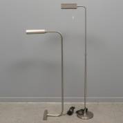 Twee metalen vloerstaande leeslampen, waarvan één in hoogte verstelbaar, de ander 110 cm hoog
