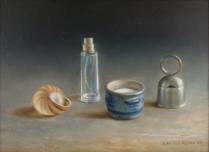 Derk van Dijken (1945), 'Stilleven met schelpje', olieverf op paneel, r.o. gesigneerd en gedateerd '04, 17 × 23 cm, aangekocht bij Galerie De Coninck, 's-Gravenland, juni 2004, aankoopbewijs bijgevoegd