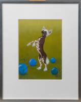 Suzan Visser (1967), staande naakthond, olieverf op papier, r.o. gesigneerd en gedateerd '95, 17,5 × 12,5 cm