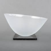 Matglazen kom balancerend op marmeren plaatje, ontwerp en uitvoering Bert Frijns -klein chipje langs de rand-, 11 × Ø 19,5 cm