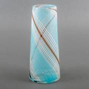 Glazen vaas met spiraalvormig bruin-blauw strependecor, model A Trina, ontwerp Dino Martens, uitvoering Aureliano Toso, 26,5 × Ø 11,5 cm
